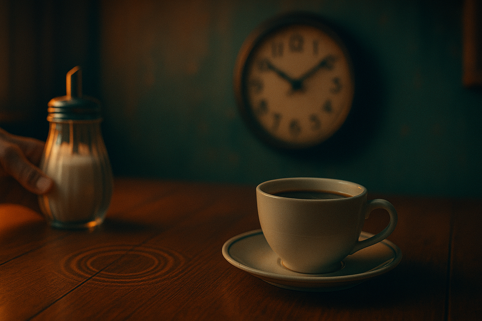 六時十分で止まった時計の下、砂糖壺が未来をこぼす。