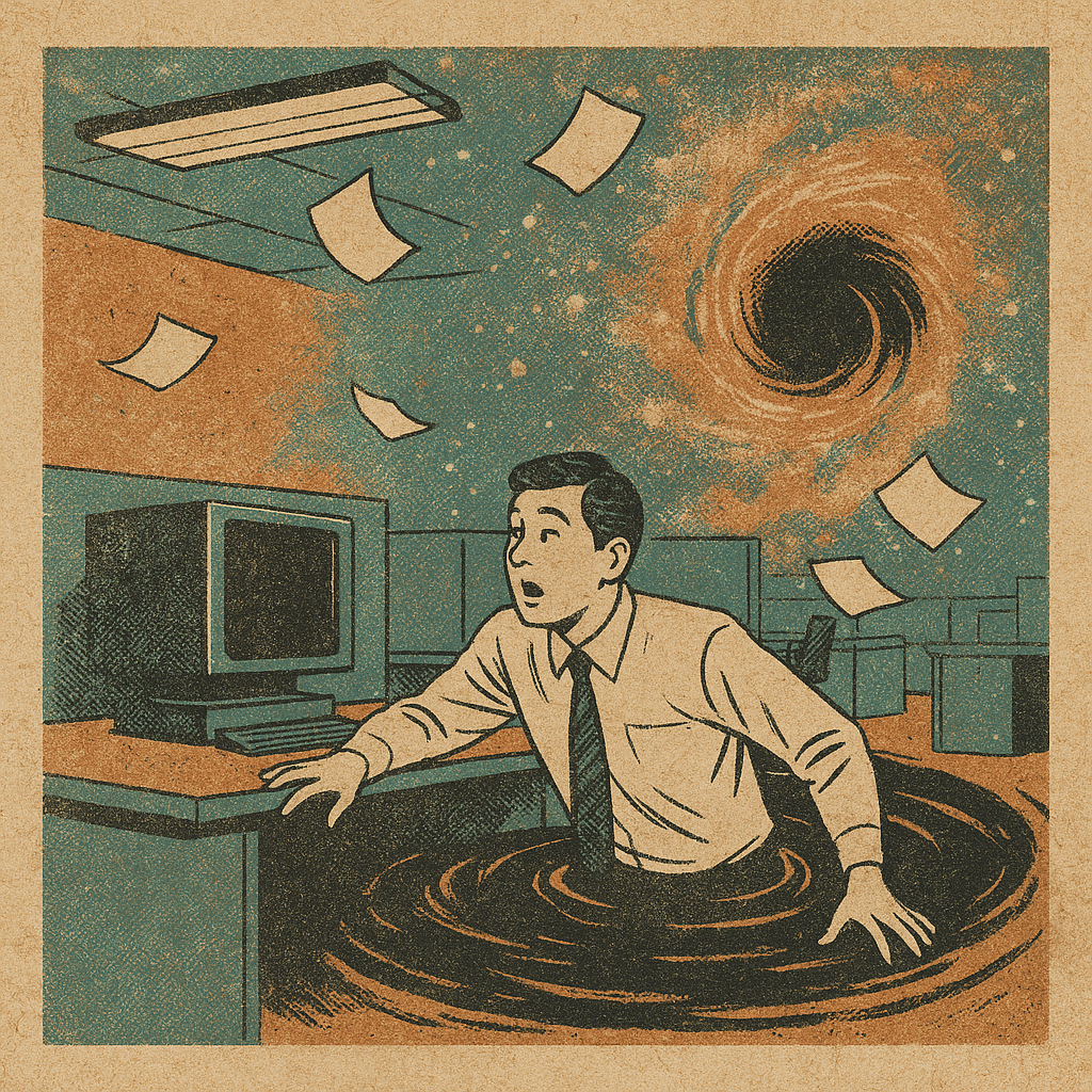 観測しているか…? この銀河の片隅、オフィスという名の時空の牢獄で、我々の魂が発する断末魔のサイレンを。我々は皆、「生産性」という名のブラックホールに囚われ、個人の尊厳をイベントホライゾンの彼方に置き忘れた、哀れな時空労働者と化してはいないか?