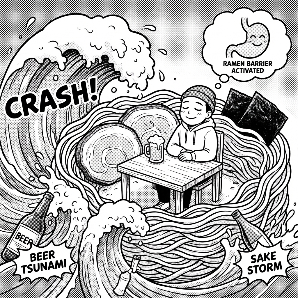 麵を啜れば、アルコールで揺らいだ時空が強制的に補正される!